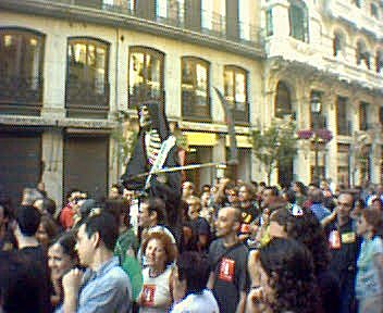 En esta ocasión fuimos a apoyar la convocatoria que realizó la agrupación de colectivos OtroMadrid contra un proyecto olímpico hipócrita e interesado, hecho a medida de las grandes empresas de la construcción y los especuladores inmobiliarios. Como publicaba El Mundo en la portada de su suplemento inmobiliario como si fuera algo bueno, la concesión de las olimpiadas supondría una revalorización del 20% de la vivienda, o lo que es lo mismo, nos pondría un 20% más lejos el tristemente famoso artículo 47 de la Constitución Española y alentaría aún más la burbuja inmobiliaria que amenaza el futuro de la economía de este país. En la manifestación se cantaron lemas contra la especulación y su relación con la candidatura madrileña: "Gallardón, campeón de la especulación", "los deportistas, no quieren autopistas", "no son un juego, son un negocio" y "las olimpiadas, fuera de Madrid" entre otros. Al final fue desplegada una pancarta en la puerta del Ayuntamiento de Madrid, bajo la atenta mirada de la policía. Ningún medio recogió el devenir de la manifestación a pesar de que al menos la agencia EFE que sepamos, realizó la cobertura. Una vez más, lamentable la actitud de los medios de comunicación de este país expertos como nadie en eso de provocar "alucinaciones colectivas" al servicio de intereses individuales. |
