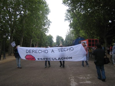 No faltó la clásica pancarta "por el derecho a techo - stop especulación" similar a aquellas que se podían ver en aquellas ya lejanas manifestaciones del 2004 |