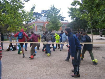 Ya en la zona del kiosko comenzaron los juegos olímpicos: "lanzamiento del ladrillo", "30 metros cuadrados lisos", etc. El juego de pincha la burbuja estuvo especialmente divertido a pesar de los pisotones que más de uno se llevó. |