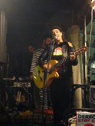 | Tras la lectura del manifiesto, el colofón final lo puso la actuación de Amparo de Amparanoia que nos deleitó con algunas canciones de su repertorio en las que no faltaron alusiones a la vivienda y el urbanismo. |