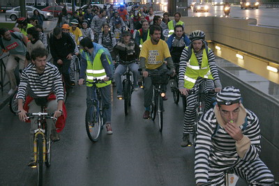 Mientras los ciclistas hacían el amplio recorrido a través de las calles de Madrid a ritmo de una serie de canciones seleccionadas para la ocasión, poco a poco la gente se fué congregando en la Puerta del Sol. El grupo de Samba Bloco do Baliza, fué calentando el ambiente en una actuación magistral. |