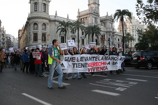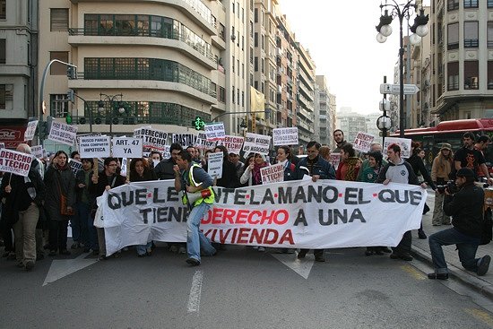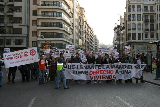 En primer lugar, a mi me gustaría agradecer a todas las personas que hoy os encontráis aquí porque con vuestra presencia estáis aportando vuestro granito de arena al trabajo que desde la propia Plataforma se viene desarrollando con el fin de denunciar la situación tan insostenible en la que hoy en día nos encontramos. Formamos parte de una iniciativa abierta a toda la ciudadanía, donde cualquier persona cabe, que surge espontáneamente y que trabaja bajo un mismo proyecto y en la misma dirección, el derecho a una vivienda digna. Este derecho se lleva vulnerando desde hace mucho tiempo sin que ningún gobierno hasta ahora, haya puesto en marcha medidas reales para protegerlo. Y visto lo visto, si nosotros no defendemos su cumplimiento, nadie lo hará en nuestro lugar. Mediante esta manifestación que hoy hacemos, planteamos unas reivindicaciones. Unas reivindicaciones que son básicas y fundamentales para cambiar la actual política de vivienda que practican los dos partidos mayoritarios. |