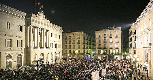 noche en plena Plaza de Catalunya, tal como estaba previsto por los