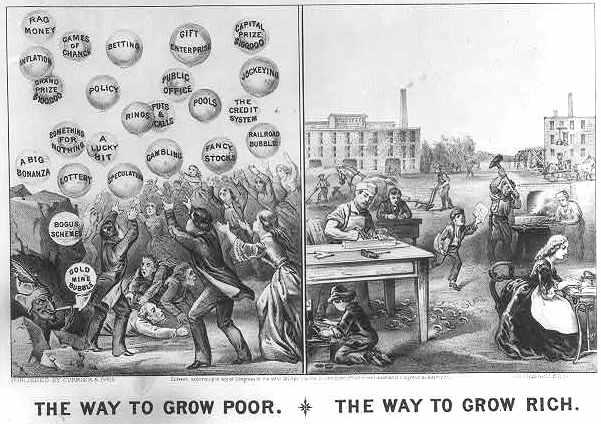 Como bien dice en inglés, la parte izquierda es la forma de crecer pobre, la parte derecha la forma de crecer rico, en realidad traducido de forma no literal indica a nivel social que el mundo de las burbujas empobrece y en cambio la productividad enriquece, y es que la gente de la izquierda solo busca embolsarse dinero fácil sin dar nada a cambio, los profesionales de la derecha se esfuerzan en hacer una sociedad para todos, ofreciendo sus conocimientos y especialidades a cambio naturalmente de una retribución que les permita vivir dignamente.