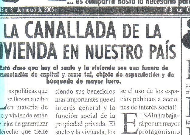 Supongo que recordareis los famosos 30 m2 de la Trujillo, el cabreo debe ir "in crescendo" porque en toda la Ciudad Universitaria apareció por docenas un gran panfleto dedicado a la vivienda, elaborado por un grupo de estudiantes democristianos (creo). Lo importante es que la sociedad ya ha abierto los ojos y ya no se deja tomar el pelo, el día que menos nos esperemos las noticias reflejarán este cambio social y probablemente reviente de una forma más o menos radical, el que compró haciendo oidos sordos a todas las voces que desde 2003 avisan sin parar ya puede ir preparándose para lo peor...