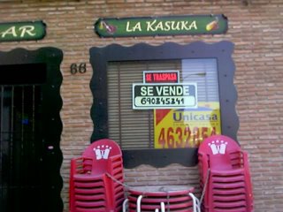 En las tres primeras fotos superiores teneis otro elemento a sumar dentro de la gran burbuja especulativa en la que nos vemos inmersos, decenas de locales en venta, algunos eran gimnasios, otros ya podeis ver vosotros mismos lo que eran, negocios que mueren por la falta de poder adquisitivo de los vecinos, en tiempos de recesión muchos negocios pagan el pato, pero aún así me permito pediros que griteis conmigo: "España va bien". Ya llevo recorridos 2000 metros, 22 viviendas en venta y 9 locales.