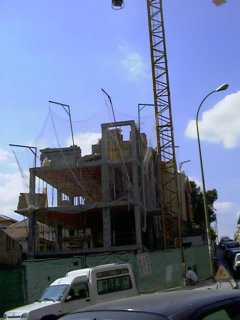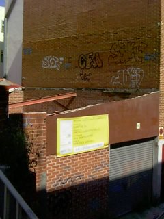 Y más solares dispuestos a ser urbanizados, en el primer caso un viejo almacen da paso a varios apartamentos de 34 m2 vendidos a 114.000 cada uno, hagan sus cuentas y diganme que negocio mejor hemos podido tener estos años, aún así andan con ciertos problemas con el ayuntamiento por el tema de la cédula de habitabilidad (un piso requiere un mínimo de 40 m2 habitables). Enfrente tenemos otro solar en el que construirán 11 viviendas con calidades de lujo (si, si, después tenemos pinturas desconchadas, aglomerados de madera, electrodomésticos cutres y acabados deprimentes).