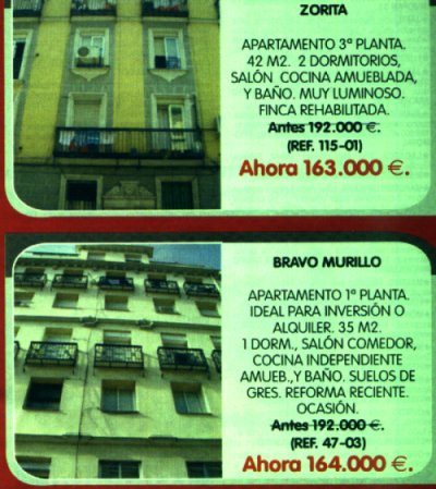 Los propietarios e "inversoreh" siguen erre que erre pensando que ese dilatado plazo de 2,5 años para la venta no le afectará, pero mes tras mes el plazo se amplía sin final, porque NADIE va a comprar su piso a estos precios de escándalo, porque NADIE es tan gilipollas de pagar el doble de letra que de alquiler de un piso equivalente, porque NADIE cree que el ladrillo sea una inversión interesante, porque TODOS han abierto de una vez los ojos y pronto eso se traducirá en el desplome de precios tantas veces anunciado, la burbuja inmobiliaria ya oficial, reconocida y aceptada es eso, una burbuja, y explotará con los plazos que el cambio de mentalidad de una mente como la española precisa, y es cierto, cabezotas lo son, pero la realidad es terca y esta locura llegará a su fin.