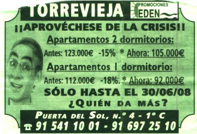 Con esta situación no es extraño que el equipo de Burbujona ya se haya dado casi unas vacaciones definitivas, porque ni nosotros mismos nos habríamos creido que hasta Benito, el Don Pepito por excelencia de los "inversiohnistas" españoles iba incluso a admitir crisis y meter un rebajón del 18%.
