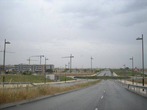 Una vez entramos en el PAU sorprende ver un mar de asfalto desértico, a diferencia de Seseña, donde la residencial "Francisco Hernando" acaba de empezar a ser habitada, en este PAU las llaves de los primeros pisos se dieron en 2006, y sin embargo en un año solo hemos visto UNA vivienda con gente viviendo dentro, el resto venía a ser poco menos que una ciudad fantasma llena de carteles como pueden contemplar en la foto de la derecha.