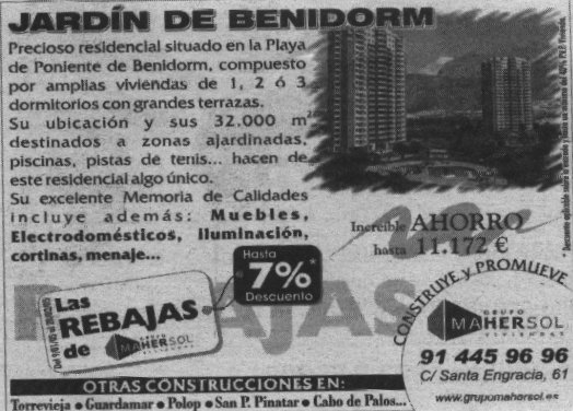 Como veis Burbujona acierta, frenesí, noticias contradictorias, viviendas en venta por doquier, quiebra o endeudamiento máximo de las promotoras, chollos que aparecen y desaparecen, pisos distorsionadores, todo en construcción y especulación a tope, pura inercia que ya no constituye una novedad para los que asistimos con más o menos tranquilidad a este triste espectáculo.
