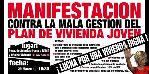 Publicado: Jue Mar 27, 2008 11:06 amAsunto: 29 marzo. Manifestación deficiencias Plan de Vivienda Joven